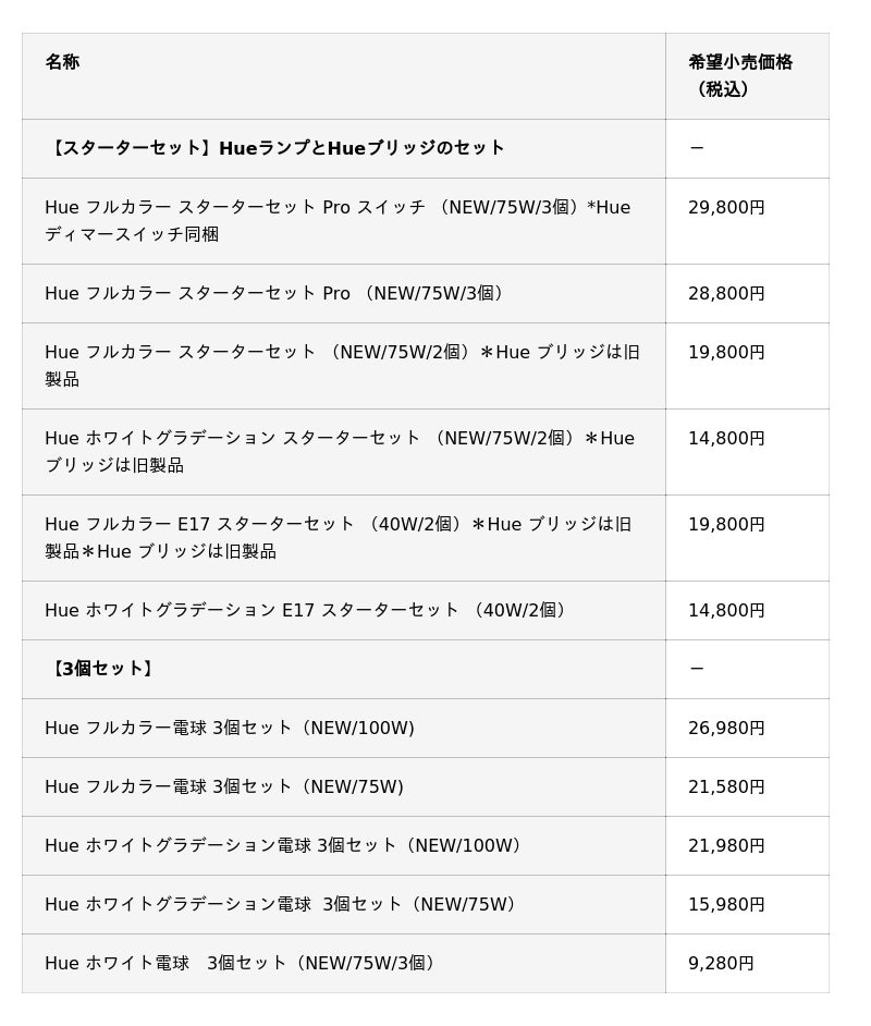 以下Hue ランプを機能アップグレードにより新発売いたします。