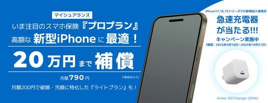 損害保険ジャパン株式会社の子会社で少額短期保険業を営むMysurance(マイシュアランス)株式会社(本社:東京都新宿区、代表取締役社長:清水廣臣、以下「Mysurance」)は、新型iPhone17シリーズの発表を受け、2025年9月10日からキャンペーンを実施します。