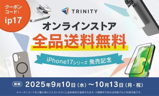 新しいiPhone 17シリーズの発売を記念し、トリニティオンラインストアでは期間限定で全品送料無料キャンペーンを実施いたします。