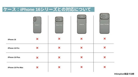 iPhone 16シリーズとのケースは共用できません。