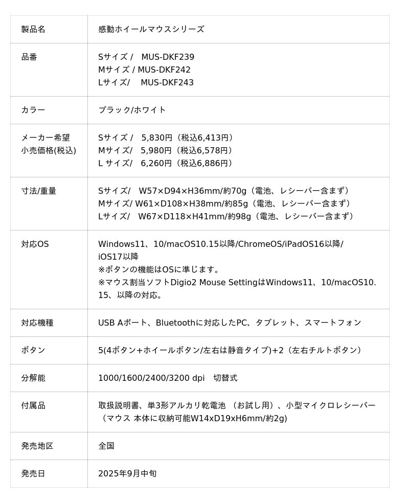 超高性能ホイールを搭載した[感動ホイールマウス]シリーズ。3サイズ2色展開。