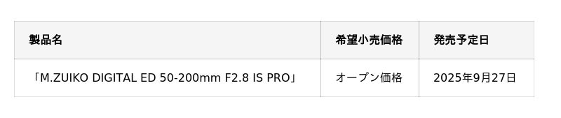 OMデジタルソリューションズ株式会社(代表取締役社長 兼CEO:杉本 繁実)が展開する映像製品ブランド「OM SYSTEM」は、「マイクロフォーサーズシステム規格」に準拠し、ズーム全域開放F2.8で100-400mm相当(※1)、さらに2倍テレコンバーター「M.ZUIKO DIGITAL 2x Teleconverter MC-20」使用時には最大800mm F5.6相当(※1)という、唯一無二の撮影を可能とする大口径超望遠ズームレンズ「M.ZUIKO DIGITAL ED 50-200mm F2.8 IS PRO」を2025年9月27日に発売します。