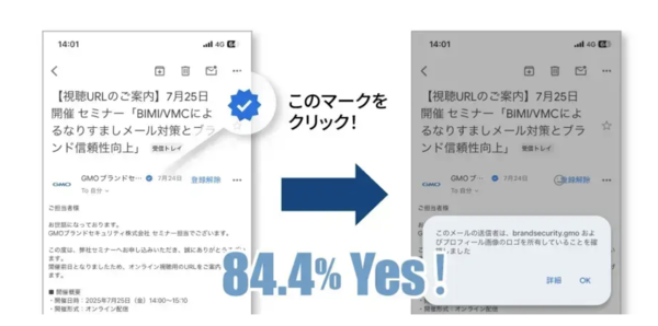 DMARCやBIMIの導入によって、受信者が正規のメールかどうかを視覚的に判断しやすくなる(出典:GMOブランドセキュリティ)