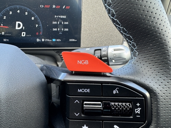 パドルシフトではシフトアップ、シフトダウンの演出もあります。シフトアップすればシフトショックがありますし、シフトダウンではマフラーからのパンッという音も出ます。もちろん、IONIQ 5 Nにはギアボックスもマフラーもありません。
