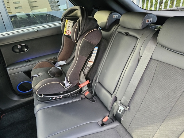 筆者の愛車は2ドアのコンパクトカーなので、家族4人で出かけるときは非常に窮屈です。IONIQ 5 Nは全長4715×全幅1940×全高1625mm、ホイールベース3000mmというサイズで、後部座席も足下まで広々なので、家族からの評判が非常に良かったのです。前側のシートがセミバケットシートで、ホールド感もよく、さらにシートエアコン搭載で暑い時期でも背中が蒸れません。