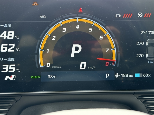 乗ってみてすぐに混乱するのがスイッチの多さ。最近は物理スイッチを減らすメーカーが多い中、IONIQ 5 Nには謎なボタンがたくさんあります。とりあえず左上の水色のスイッチがドライブモードの選択なので、ここからスポーツモードに変更し出発。今回は千葉県から会津若松市までの300km超のロングドライブです。