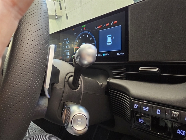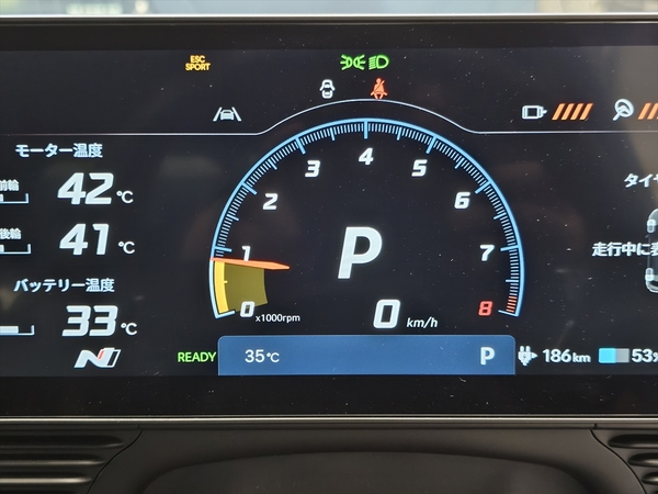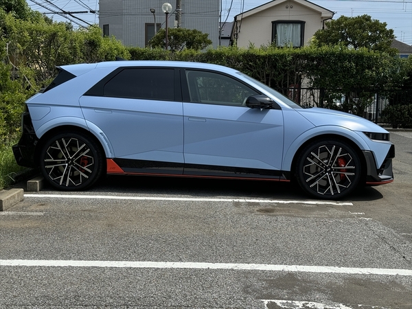 IONIQ 5 Nはスポーツカー的な演出が優れているだけのクルマではありません。自ら「ハイパフォーマンスEV」と呼ぶだけあって、走行性能も非常に高いのです。高速を走っているときに、ついつい好奇心に逆らえず、ハンドル右上の「NGB」を推してみました。これは「N Grin Boost」という10秒間だけMAXパワーの650PSを絞り出すもの(通常は609PS)。このNGBを使うと0-100km/h加速は3.4秒というからおそろしいですね。