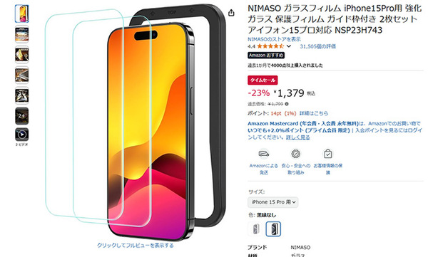 【今だけ23%オフ】米軍規格で傷や衝撃に強い、iPhone 15 Pro対応の液晶保護フィルム Amazonタイムセール中