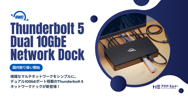 アスクは9月10日、OWC社の新製品「Thunderbolt 5 Dual 10GbE Network Dock」の国内取り扱いを開始した。この製品は、複数の高速ネットワーク接続とNASへの高速アクセスを、1本のThunderbolt 5ケーブルで実現できるデバイスである。