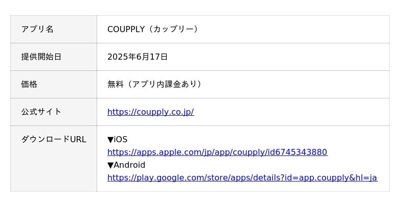 COUPPLY株式会社(所在地:大阪府堺市、代表:白水康誠)は、2025年6月17日にリリースした夫婦・カップル向けのコミュニケーションアプリ『COUPPLY(カップリー)』において、日々の会話をより楽しく、より深くする「質問機能」をリニューアルいたしました。