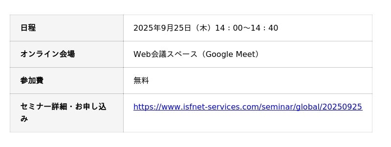 セミナーお申し込みはこちら: https://www.isfnet-services.com/seminar/global/20250925