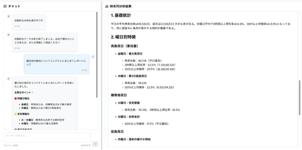 曜日・時間帯・車両形態などの切り口でデータを掛け合わせ、異常値や傾向をわかりやすく提示。