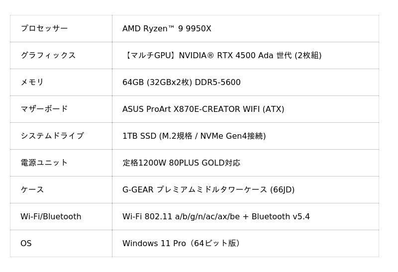 株式会社ヤマダデンキ(本社:群馬県高崎市、代表取締役社長:佐野 財丈)は、TSUKUMO(ツクモ)ブランドで独自に展開するBTOパソコンにおいて、NVIDIA RTX 4500 Ada 世代グラフィックスカードを2枚搭載したマルチGPUモデルを、9月11日(木)に発売いたしました。