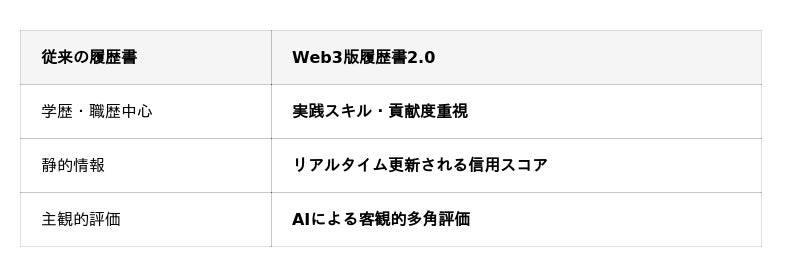 従来の学歴や職歴では測りきれない才能や貢献を、公正かつ透明に評価できる仕組みをつくることは、Web3社会の基盤を築くうえで欠かせません。