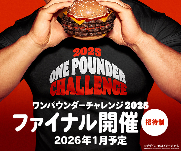 さらに、各回でバーガーを完食した数が多かった3名(計9名)は、2026年1月に開催予定の「ワンパウンダーチャレンジ2025 ファイナル」へ招待されます。