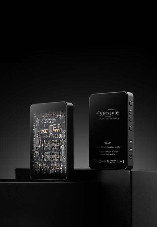 「SIGMA」は、Questyleの集大成となるポータブルDAC/ヘッドホンアンプで、据え置き機クラスの音質を持ち運べることを目指し開発されました。名称は「Summation(総和)」を意味し、これまでの技術とノウハウを結集して誕生しています。