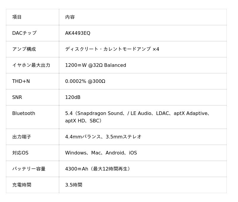 4300mAhの大容量バッテリーにより、最大12時間の連続再生が可能。主な仕様
