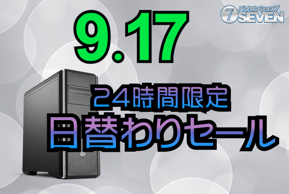 BTOパソコンメーカーセブンアールジャパンが運営する「パソコンショップSEVEN」は、9月17日に24時間限定セールを実施する。セール期間は当日の0:00から23:59までの1日限定で、公式オンラインショップにて開催される。最新のゲーミングPCやデスクトップPCが最大76,000円割引で購入可能だ。