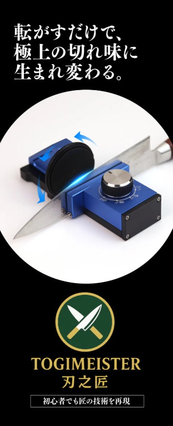 Grateful Import(所在地:愛媛県 / 代表:二宮 健治)は、転がすだけで極上の切れ味に生まれ変わる【TOGIMEISTER 刃之匠】を、2025年9月14日(日)11:00より、応援購入サービスMakuakeにて独占販売を開始致しました。
