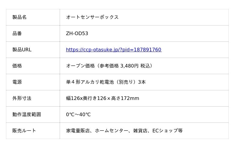 株式会社シー・シー・ピー(東京都台東区、代表取締役社長:横治 一也)は、手をセンサーにかざすと自動でふたが開閉するので衛生的に使えるコンパクトサイズのゴミ箱『オートセンサーボックス』(オープン価格)を10月上旬より家電量販店、ホームセンター、雑貨店、ECショップ等にて順次発売いたします。