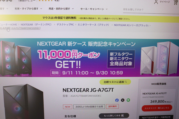 なお、発売を記念して、新NEXTGEAR全モデルが1万1000円値引きになるキャンペーンを9月30日まで実施しています。この機会をお見逃しなく!