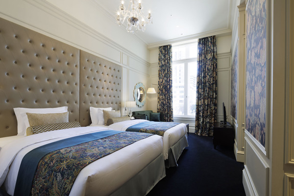 小物や服といったファッションファブリックとしてのリバティは以前から日本にありましたが、インテリアファブリックとしてのリバティが日本へ上陸したのは一昨年のことなのです。 壁紙ですとかカーテンですとか、ダイナミックに使われるファブリックに関しては、日本での取り扱いは始まったばかり。大阪ではちょうど万博があり、イギリスパビリオンにもちょうどリバティのインテリアファブリックが採用され、日本の東と西で同時期にお披露目する機会に恵まれました。 ホテルのお部屋そのものもイギリスの会社がデザインしていますので、インテリアと非常にマッチするんですよね。 そこがやっぱり大きなコラボレーションのポイントかと思います」