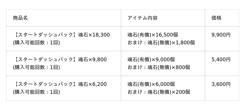 ヒーローガチャを引ける魂石をお得にゲットできる「スタートダッシュパック」が販売中です。