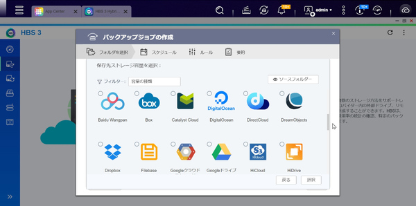 QNAP NASでは、「Hybrid Backup Sync 3(HBS3)」という無料のソフトをインストールすることで、クラウドストレージやほかのQNAP NASにデータを定期バックアップできる。バックアップ先のクラウドストレージとしては、AWS(Amazon S3)やMicrosoft Azureだけでなく、Googleドライブ、Microsoft OneDrive、Dropbox、Boxといった、一般にも普及しているサービスに幅広く対応している。