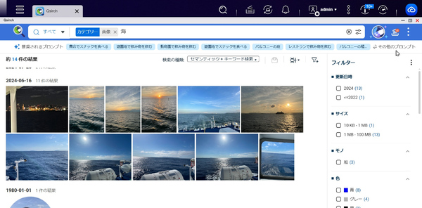 QSirchは、QNAP NASに保存されたドキュメントファイル(Word、Excel、PowerPoint、PDF、テキストなど)の全文検索はもちろん、タグによる絞り込み検索、AIによる画像解析検索(被写体のモノ、色合い、画像内の文字、人物、撮影地などの条件で検索可能)にも対応している。ファイル名がわからない場合でも迅速に見つけられるので、自分が過去に作成した資料も、ほかのメンバーが作成した関連資料も有効活用できるはずだ。