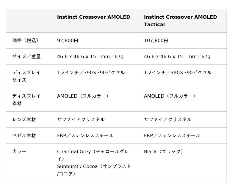 『Instinct Crossover AMOLED』『Instinct Crossover AMOLED Tactical』