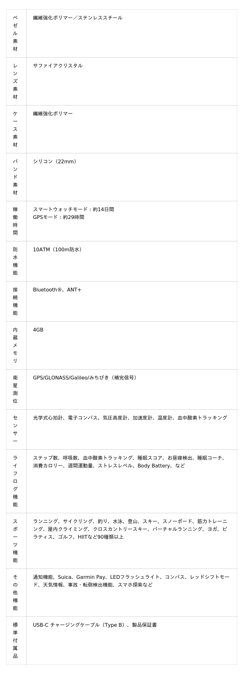 ・内蔵アクティビティプロフィールは、ランニング、サイクリング、釣り、水泳、登山、スキー、スノーボードや筋力トレーニングなどのほか、屋内クライミング、クロスカントリースキー、バックカントリースキー、バーチャルランニング、ヨガ、ゴルフ、HIIT(高強度インターバルトレーニング)など注目のスポーツと合わせ90種類以上に増加。★