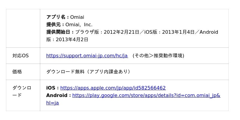 「Omiai」は、2012年2月に日本でいち早く誕生した、“まじめな出会い”を提供するマッチングアプリの元祖です。
