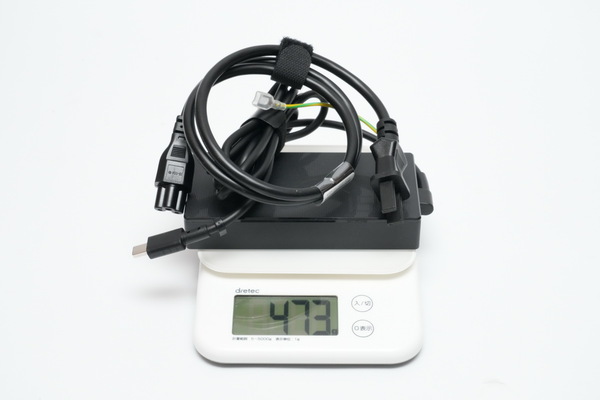 本体だけでなく、ACアダプターもケーブル込みで約473gと軽量に仕上げられている。なお、本機のUSB 3.2 Gen1 Type-Cは給電に対応しているので、普段の持ち歩きには、より小型・軽量なサードパーティー製USB ACアダプターを組み合わせてもいいだろう。