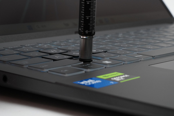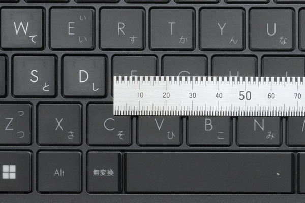 キーボードは前述のとおり102キーの日本語配列で、イルミネート機能を搭載。キーピッチは実測19mm前後、キーストロークは実測1.7mm前後だ。