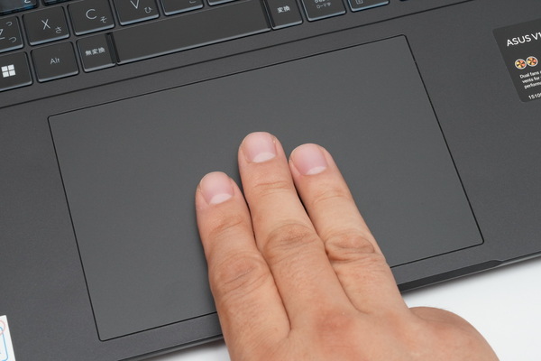 タッチパッドは実測150×98mmと巨大なスペースが確保されており操作性がいい。また、ひんぱんに使う設定やアプリに素早くアクセスするための「スマートジェスチャー」機能が実装されている。