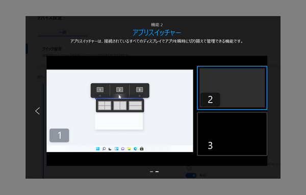 「ScreenXpert」はもともとデュアルディスプレー搭載ノートPC向けユーティリティーであったが、本機では外部ディスプレー、モバイルディスプレーを接続した際に、ウインドーの移動・配置、アプリの切り替えなどに活用できる。ほかのPC向けには提供されていないので、「ScreenXpert」の利便性を享受できるのは大きなアドバンテージだ。