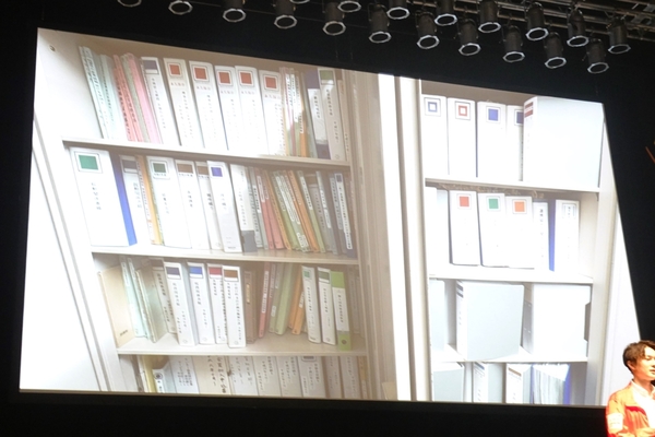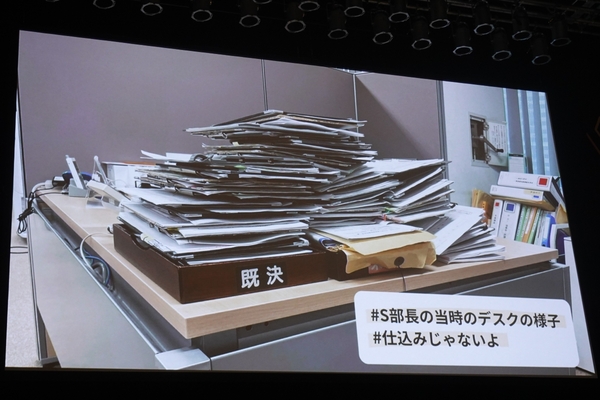 当時の状況を象徴する光景がある。ある部長の座席の上には、承認待ちの決裁書類が文字通り山積みになっていた。「当時を知らない職員にこの光景を見せると、『仕込んだでしょう』と言われてしまいました」と西田氏。さらに、フリーアドレスを採用している課長以下の職員への回覧方法は、固定席がないため、担当者の個人ロッカーに決裁書類を「突っ込んで」回していたという状況だ。