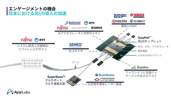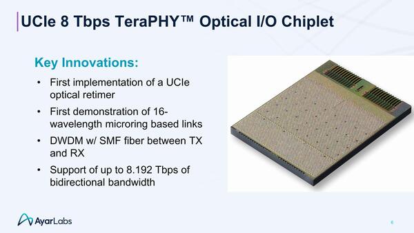 そんなAyar Labsが開発しているのがTeraPHYである。Ayar LabsはCPOをチップレットの形で提供しており、そのチップレットの名前がTeraPHYというわけだ。