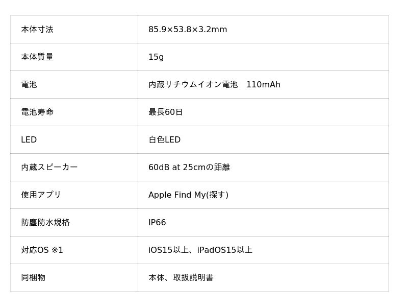 Apple Find My(探す)アプリ対応iPhone、iPad、MacBookの探すアプリと完全連携。紛失したアイテムの位置を地図上で確認したり、近くにある場合は音を鳴らして見つけることができます。世界中のAppleデバイスネットワークを活用した匿名かつ暗号化された追跡システムで、プライバシーを保護しながら確実にアイテムを見つけ出します。