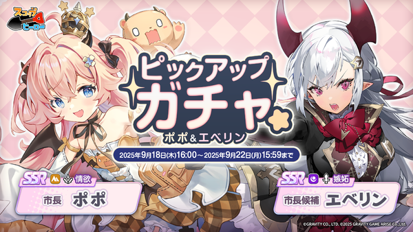 今回の無料ゲームランキング1位獲得を記念して、超強力な新ヒーロー「SSR 市長 ポポ」「SSR 市長候補エベリン」をピックアップしたガチャが先行開催中。期間は9月22日までと短いので、お見逃しなく。