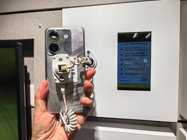 ここに置いてあるスマートフォンがキプロスでは売れ筋、あるいは人気ということになるのでしょう。品ぞろえを見ると、なんとシャオミのPOCOが複数展示されていました。POCOはオンライン販売向けの製品で、日本や韓国などごく一部の国で店舗展示がありますが、キプロスの家電量販店でも実機の展示がありました。シャオミの展示ブースに置いていないことから、完全なる別ブランドとして販売されていることがわかります。