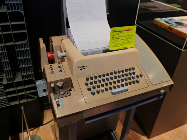 HITAC 10の時代に頻繁に使われ、その後のマイコンユーザーたち羨望の周辺機器だったテレタイプ端末もある。こちらも、もう泣いてしまうミニコンやマイコンのユーザーがいるはず。写真ではセットされていないが、いわゆる8単位カミテープを読み取り・鑽孔できる(紙テープについては「やっぱりカッコいい!! うちのパソコンに「紙テープ装置」がやってきた!」を参照)。