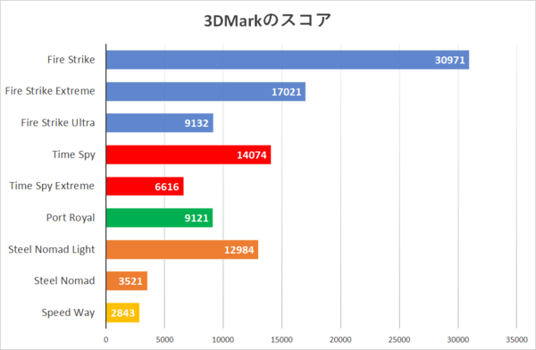 これ以外のテスト結果をまとめておいたので、手持ちのPCとの性能比較で役立ててほしい。