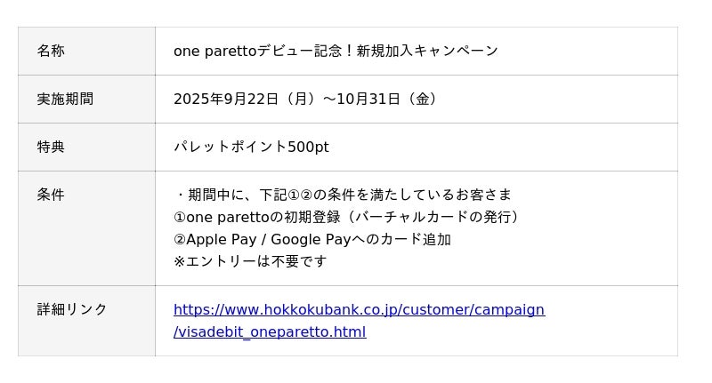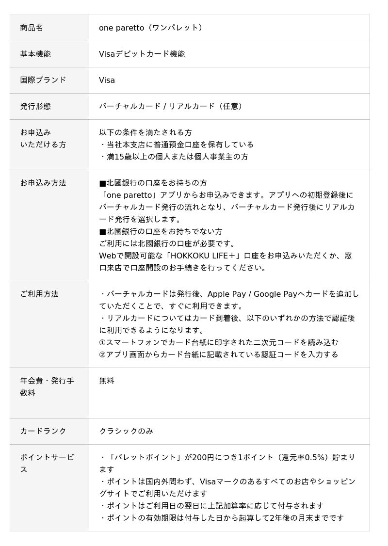 株式会社北國銀行は、スマートフォンから簡単に申し込み・利用が可能な新しいVisaデビットサービス「one paretto(ワンパレット)」を、2025年9月22日(月)より提供いたします。