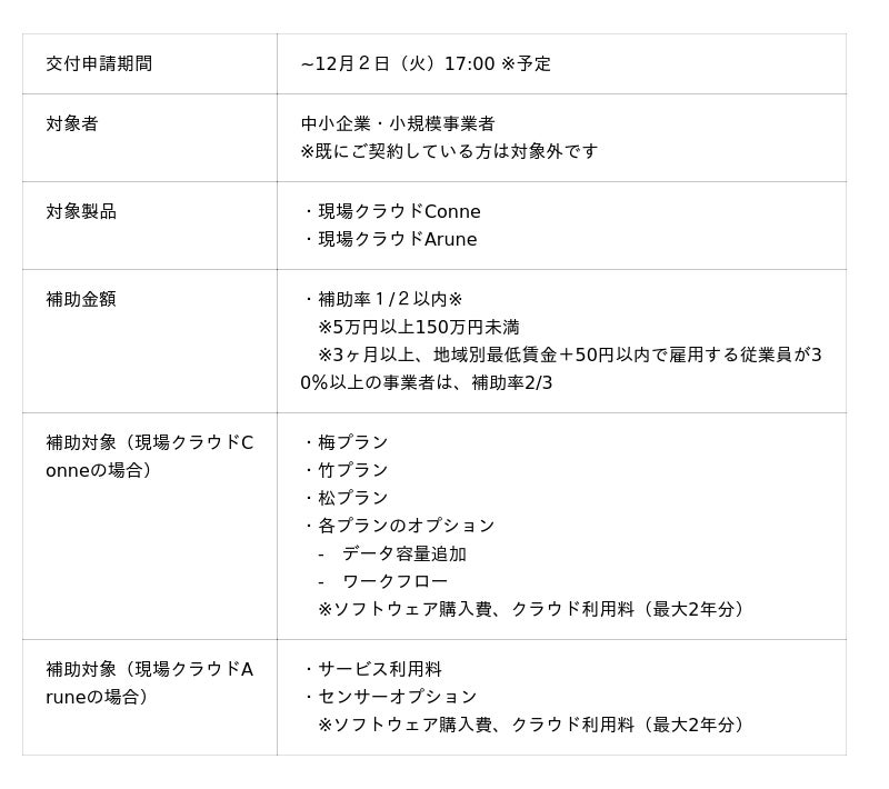 株式会社現場サポート(本社:鹿児島県、代表取締役社長:吉田竜二)が提供している、「現場クラウドConne」と「現場クラウドArune」がIT導入補助金の対象ツールとして認定されました。
