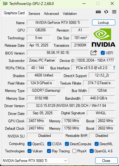 Ryzen 5 5700X&RTX 5060 Ti 8GBを搭載