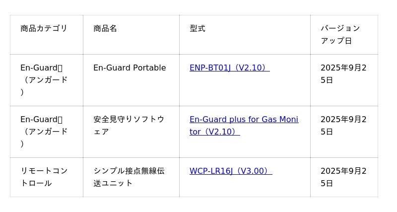 ※「ENP-BT01J」「En-Guard plus for Gas Monitor」「WCP-LR16J」を購入済みのお客様は、無償アップデートいたします。