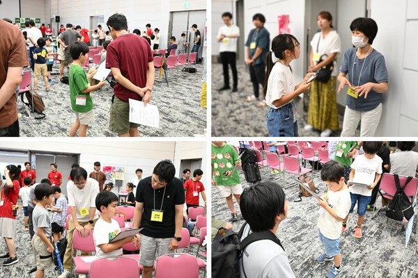 「最後に、ほかの人たちの意見も聞いてみましょう。『〇〇なさいたま市にするために、どんな建物があったらいいと思いますか?』、『どんな街にしていったらいいとおもいますか?』と、会場にいる大人の人たちにインタビューしてみましょう」と促すと、こどもたちは自分のアイデアを持って、楽しそうに大人たちに質問して回ります。